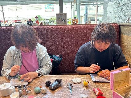 最後の仕上げの目もお好きな大きさや種類にしてもらったので、それぞれ個性的な作品になりました。
