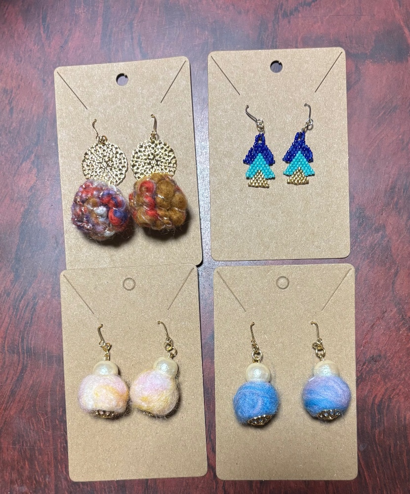 ハンドメイドマルシェに出してみようとピアスとポニーフックをせっせと作っています。初めての試みですが、なかなか可愛く出来てるのではないでしょうか。羊毛使ってないのもありますが、やはり羊毛使ってる方が自分らしさが出ますね。売れるかなー売れたらいいなー